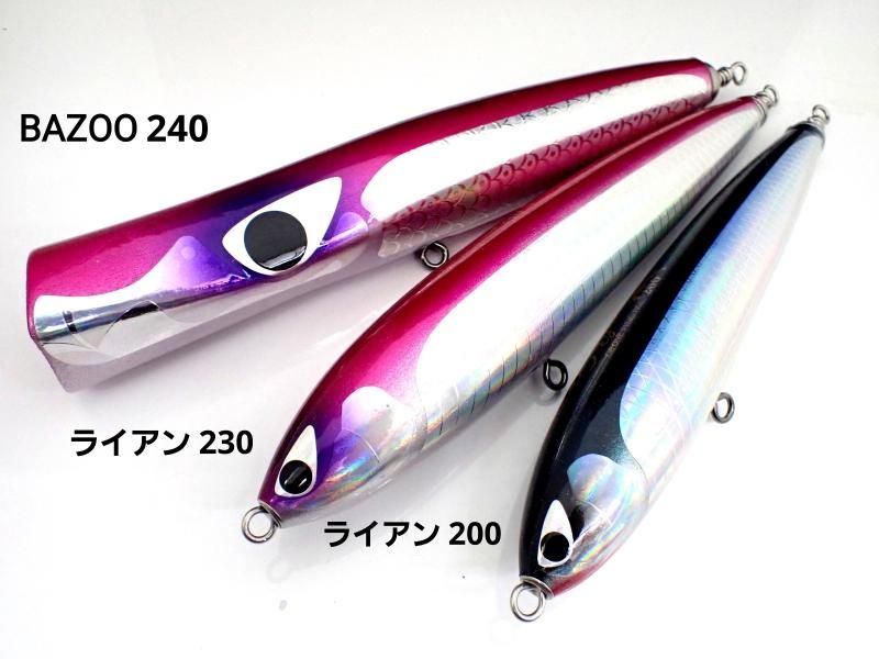 現在、CB ONE社ウッドプラグは販売価格5万円以上のオフショアキャスティングロッド・リールをご購入して下さるお客様を対象に販売させていただきます。(ロッド1本につきルアー1本 ※中古品商品は除く) ※一部のルアーはCB ONE社ロッドご購入者様のみ対象とさせていただいております。(ルアー名横に記載のあるもの) 僅少の入荷しかなく転売目的での購入を防ぐ目的と、ロッド等をご購入下さる方への特典となりますようこの販売方法とさせていただいており、ご理解いただけましたら幸いです。 ■オフショアキャスティングロッドはコチラより ■ご購入方法 会員登録・ログインしていただき対象のロッド(リール)と同時にカートに入れて決済してください。 上記の内容をご理解いただけずルアーのみを決済される事例も以前ありました事から会員ログインしないと購入できないようにさせていただいております。(会員登録される事で当方から頻繁に案内が届くような事は一切ございません) ログイン・会員登録はコチラから (SPEC) ■DEXON(ディクソン) 長さ 200mm 自重94g 適正リング MAXPOWER RING XX #8 適正フック 約7g/1個 あたり 定価 ¥12320(税込) ■ルドルフ260 長さ 260mm 自重185g 適正リング MAXPOWER RING EXH #10 適正フック 約g11〜14g/1個 あたり 定価 ¥16500(税込) ■ルドルフ300 長さ 300mm 自重238g 適正リング MAXPOWER RING EXH #10 適正フック 約g11〜19g/1個 あたり 定価 ¥22000(税込) ■BRUNO(ブルーノ)130 長さ 130 mm 自重29g 適正リング MAXPOWER RING EXH #5 適正フック 約2g/1個 あたり 定価 ¥8580(税込) ■GILLA(ギラ)140 長さ 140 mm 自重32g 適正リング MAXPOWER RING XX #5 適正フック 約2〜3g/1個 あたり 定価 ¥8690(税込) ■GILLA(ギラ)160 長さ 160 mm 自重43g 適正リング MAXPOWER RING XX #6 適正フック 約3g/1個 あたり 定価 ¥9790(税込) ■GILLA(ギラ)220 SOLD OUT 長さ 220 mm 自重110g 適正リング MAXPOWER RING XX #9 適正フック 約9g/1個 あたり 定価 ¥11000(税込)〜 ■GILLA(ギラ)250 長250 mm 自重172g 適正リング MAXPOWER RING XX #9〜10 適正フック 約9g〜11g/1個 あたり 定価 ¥14300(税込)〜 ■BAZOO (バズー )240 SOLD OUT 長さ 240 mm 自重153g 適正リング MAXPOWER RING XX #10 適正フック 約11〜14g/1個 定価 ¥14850(税込) ■RYAN(ライアン)250 SOLD OUT 長さ 250 mm 自重180g 適正リング MAXPOWER RING EXH #10 適正フック 約11~14g/1個 ( 定価 ¥11000(税込)〜 ■RYAN(ライアン)230 SOLD OUT 長さ 227 mm 自重130g 適正リング MAXPOWER RING EXH #10 適正フック 約11g/1個 (ST-66 /0等) 定価 ¥11000(税込) ■BAZOO SLIM(バズー スリム)220 SOLD OUT 長さ 220 mm 自重80g 適正リング MAXPOWER RING EXH #8 適正フック 約7g/1個 (ST-66 3/0等) 定価 ¥12870(税込) ■DEXON(ディクソン)160 SOLD OUT 長さ 160 mm 自重52g 適正リング MAXPOWER RING XX #6 適正フック 約3g/1個 定価 ¥10450(税込) ■BRUNO(ブルーノ)180 SOLD OUT 長さ 180 mm 自重61g 適正リング MAXPOWER RING EXH #7 適正フック 約5g/1個 (ST-66 /0等) 定価 ¥9350(税込) ■BAZOO(バズー)240 SOLD OUT 長さ 240 mm 自重153g 適正リング MAXPOWER RING EXH #10 適正フック 約11~14g/1個 (ST-66 /0等) 定価 ¥14850(税込) ■RYAN(ライアン)230 SOLD OUT 長さ 227 mm 自重130g 適正リング MAXPOWER RING EXH #10 適正フック 約11g/1個 (ST-66 /0等) 定価 ¥11000(税込) ■RYAN(ライアン)200 SOLD OUT 長さ 201 mm 自重93g 適正リング MAXPOWER RING EXH #8 適正フック 約7g/1個 (ST-66 /0等) 定価 ¥10230(税込)
