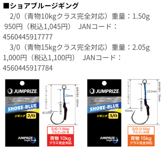 ジャンプライズ ショアブルー・ジギング ※サイズにより価格は異なります。